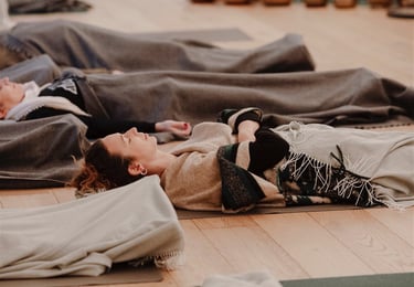 It was from this foundation that I discovered Sound Healing as a profound tool for inner journeying. I trained in a variety of sound instruments, continuing with the harmonium and specialising in Shamanic Drum Healing and Drum Journeying, working with the underworld, middle world, and upper world. My focus lies particularly in Middle World journeys—especially supporting pregnant women in connecting with their bodies and their babies, receiving intuitive messages in a safe space. These sound journeys also support creative processes and life decisions, anchoring people into a grounded sense of self. Alongside this, I became a certified teacher in Yin Yoga. Just like sound healing, yin invites us into deep stillness. It works subtly on the physical body while reaching into the emotional and energetic layers, helping us release and transform. If sound heals the psyche, yin nurtures the body—they meet in the space of gentle, transformative presence.